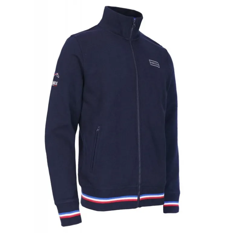 La veste sweat Reveurh de la marque Harcour, arbore fièrement le drapeau français brodé dans le dos sur la manche droite et le logo Harcour sur la poitrine gauche.