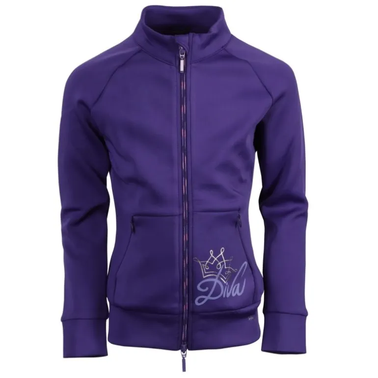 La veste sportive Diva Violet Harry’s Horse est munie d’une fermeture éclair bidirectionnelle, de deux poches zippées et du logo Diva sur la poche gauche.