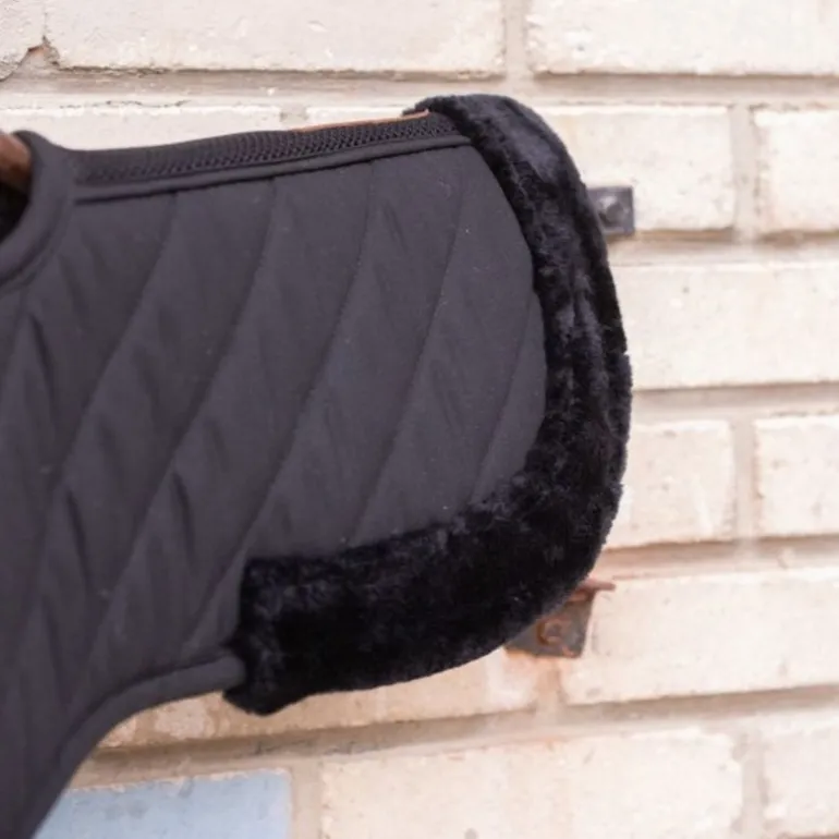 Doublé avec une fourrure synthétique ultra douce, présente également à l’avant au niveau du garrot, et à l’arrière pour entourer le troussequin de la selle.