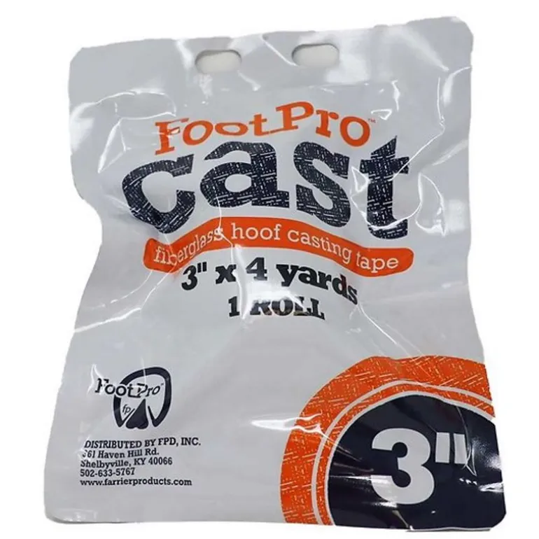 FootPro Cast 3 est une résine imprgnée sur une bande en maille de fibre de verre très pratique pour consolider les sabots atteints de seimes et les traiter ainsi que pour le brochage des fers sur une paroi fragilisée.