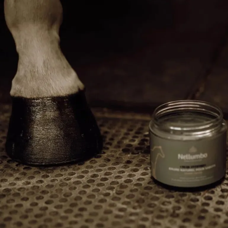 Le baume sabots noir intense Nellumbo prévient la pourriture de fourchette tout en laissant respirer le pied de votre cheval. Le charbon végétal activé aide naturellement à protéger et à lutter contre les bactéries. Il a une grande capacité d’absorption et agit comme un aimant pour capturer les impuretés. Les matières premières utilisées, telles que le beurre de karité et l’huile de colza, nourrissent et assouplissent le sabot de la fourchette. Hautement concentré en charbon végétal, il recouvre les sabots, même les plus clairs, d’un noir intense. Il est idéal pour les chevaux vivant au pré ainsi qu’en box. Le baume pour sabots a été conçu et formulé avec les précieux conseils d’aromathérapeutes et de vétérinaires, ainsi que de l’ingénieur en recherche et développement Nellumbo, Sandrine.