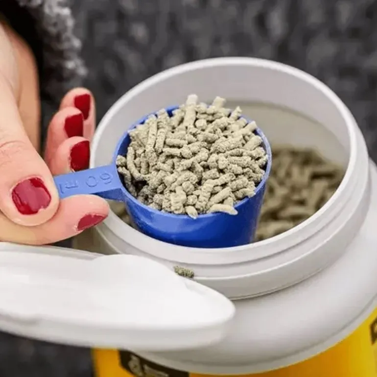– Se présente sous forme de granulés appétant, à mélanger à la ration quotidienne de votre cheval à hauteur de 30g (1/2 mesure) pendant 1 mois