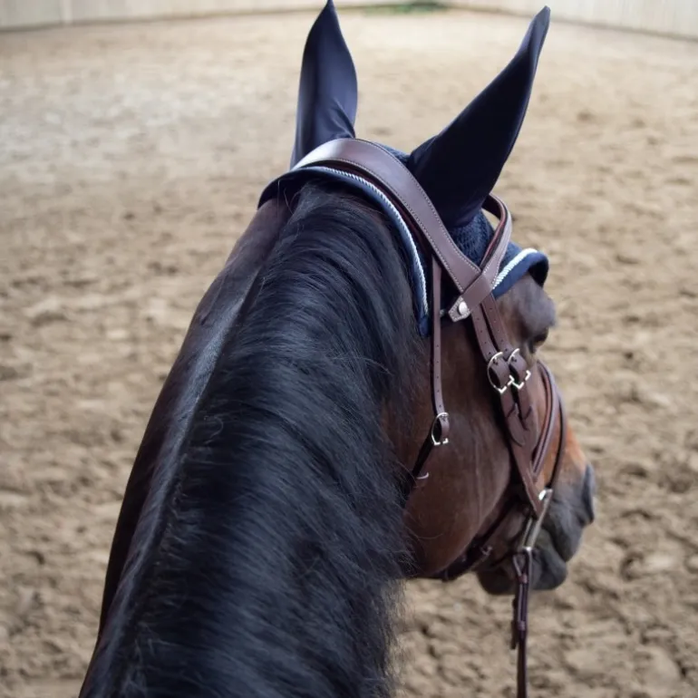 Avec sa touche et son style élégant, le bonnet anti-mouches Antarès assurera confort et protection à votre cheval durant vos séances de travail.