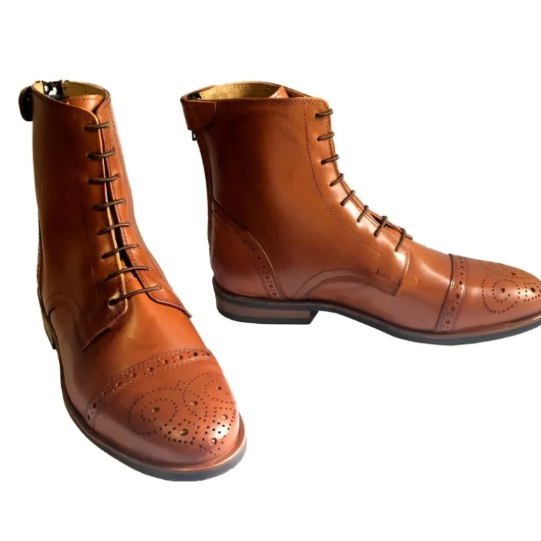 Confectionnées dans un cuir de premier choix au très beau coloris fauve, les boots Cyprien complètent votre tenue avec élégance. Alliant allure classique et finitions travaillées, ces bottines vous accompagnent avec chic à la ville comme à l’écurie. Leurs renforts au niveau de la pointe et du talon sont rehaussées de fines surpiqûres et d’élégants motifs perforés. Leur doublure en cuir souple avec talonnette matelassée optimise le confort du pied.