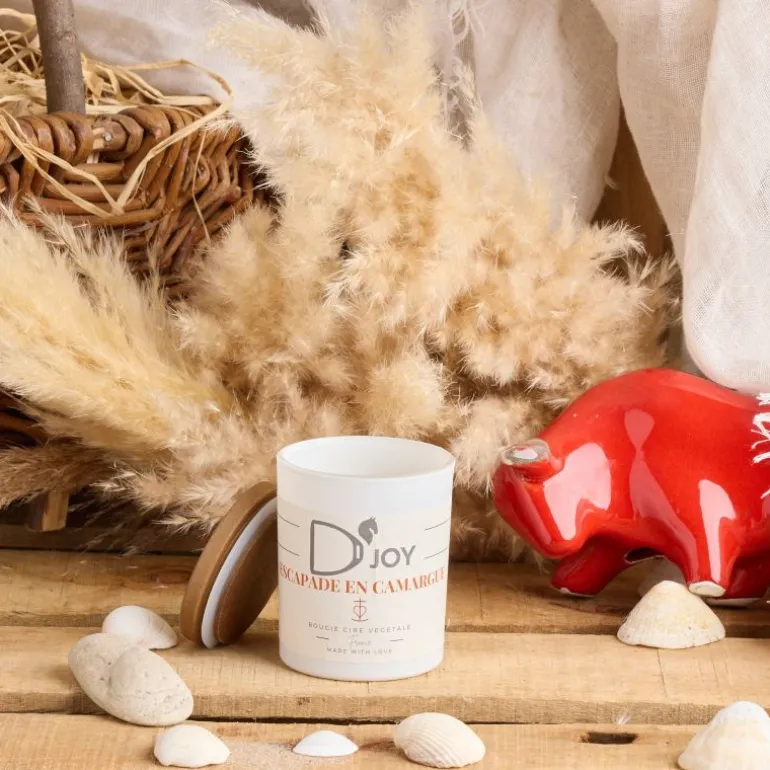 Avec la petite bougie Escapade en Camargue D’joy cheval et senteurs, embarquez pour un voyage sensoriel au cœur de cette terre sauvage et envoûtante.