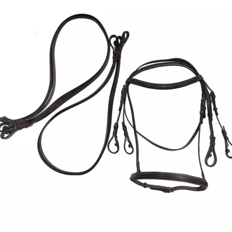 Cet équipement de dressage est fourni avec deux paires de rênes en cuir lisse.