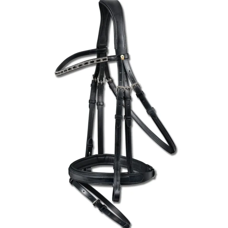 Ce filet comporte une têtière anatomique et une muserolle combinée toutes deux doublées de cuir souple.