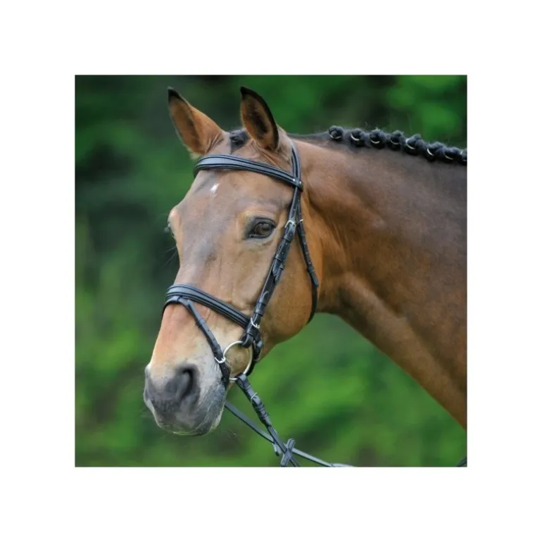 Sa muserolle plus large sur sa partie centrale est de type Pull-back combinée. Elle est articulée et munie d’anneaux de chaque côté afin de provoquer un mouvement de renvoi.