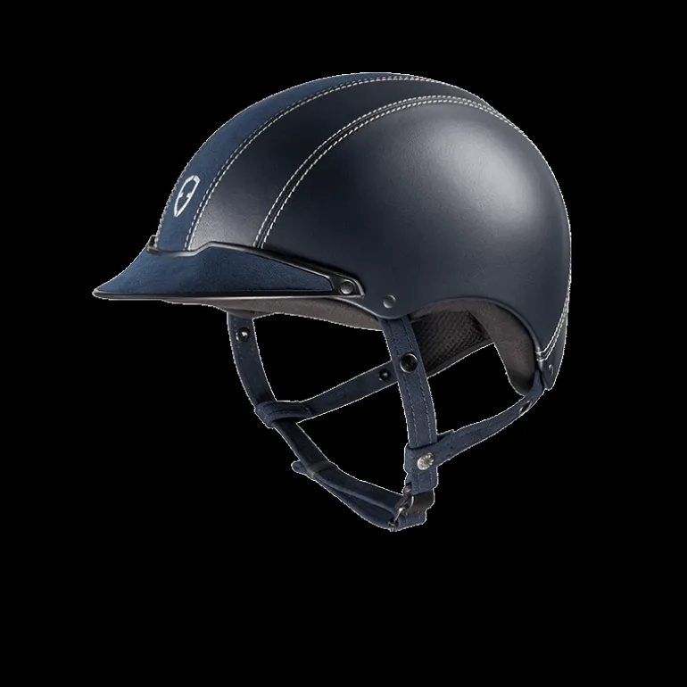 Conçu dans une coque en carbone et fibre de verre, Epona allie résistance et légèreté. Cet élégant casque d’équitation est tapissé de cuir pleine fleur de qualité française élégamment surpiqué de fil ivoire. Quatre canaux d’aération ménagés dans la calotte permettent de ventiler le crâne pour un bien-être supérieur au cours de l’effort sportif. Son cuir haut-de-gamme bénéficie d’un traitement déperlant et anti-UV maximisant sa durabilité.