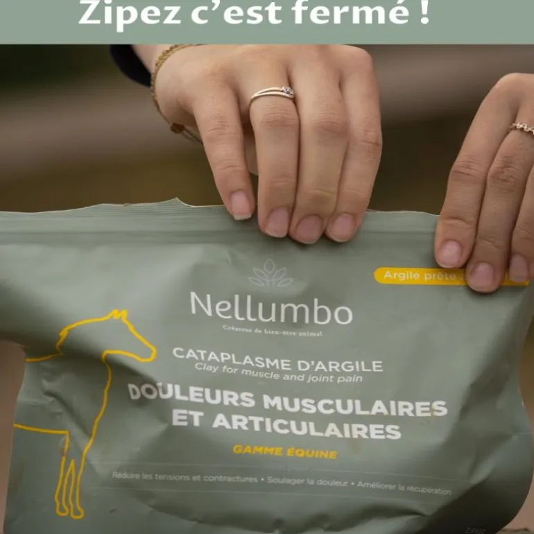 Le cataplasme d’argile verte, prêt à l’emploi Nellumbo est spécialement conçu pour le confort musculaire et articulaire du cheval.