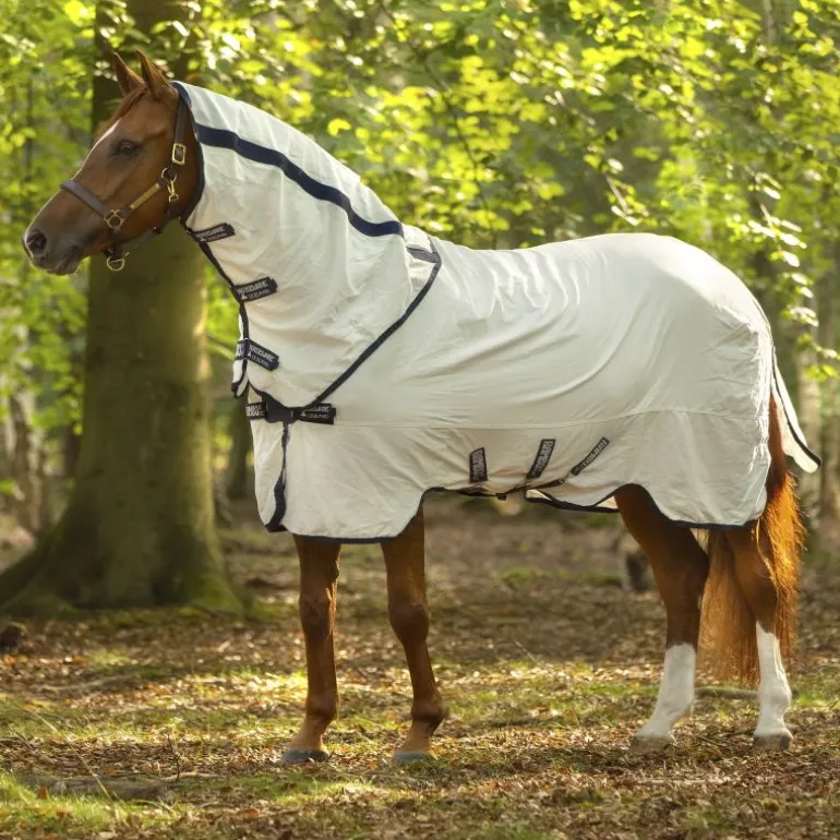Fabriquée dans un matériau naturel, écologique, biodégradable et recyclé, la chemise anti-mouches Natura Rambo Summer Sheet Horseware protège votre cheval des rayons uv à 95%.