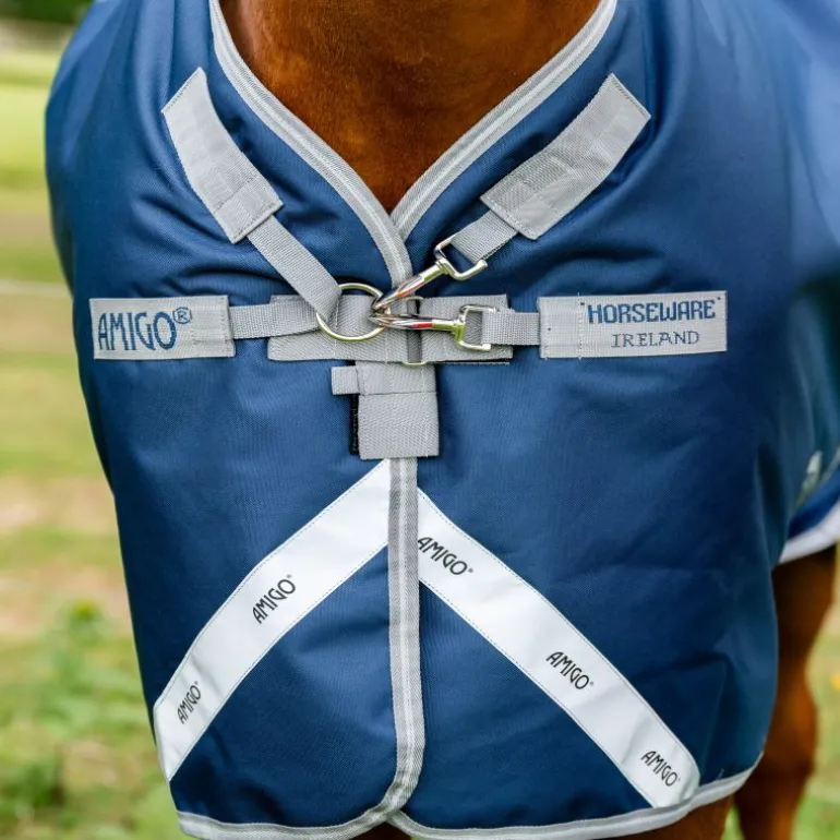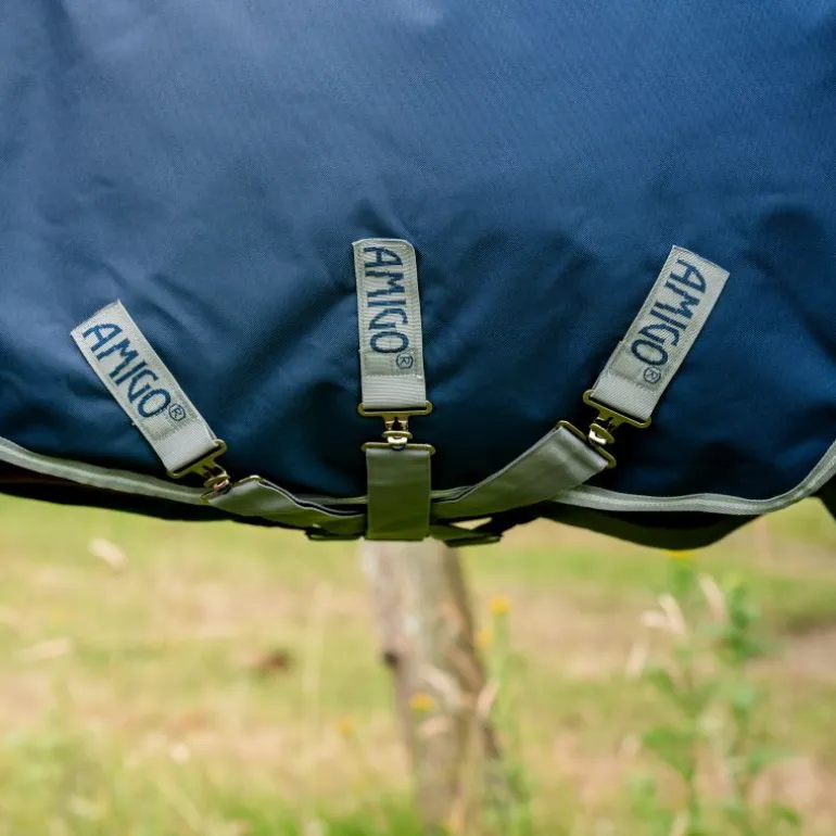 Confectionnée dans un robuste nylon balistique 1200 deniers imperméable et respirant, la couverture Amigo Horseware assure une protection de qualité à votre cheval.