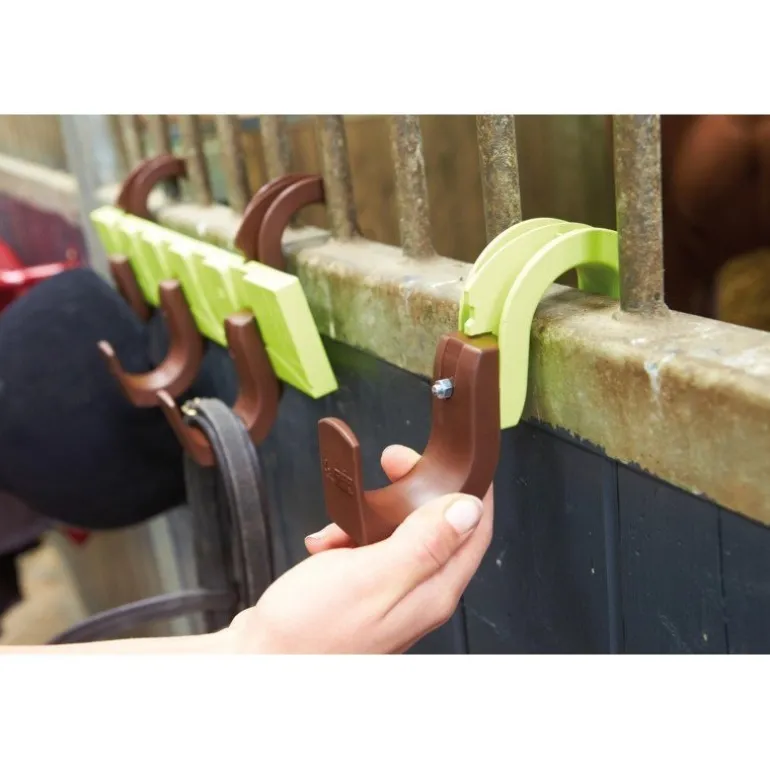 Robuste, le crochet Proclip peut être fixé au mur et utilisé pour l’accrochage de multiples objets : brides, licols, vêtements, combinaisons, mais aussi divers outils à manche. Il peut aussi être facilement intégré dans le porte-bride Proclip, combiné avec la platine Proclip ou avec un autre crochet Proclip.