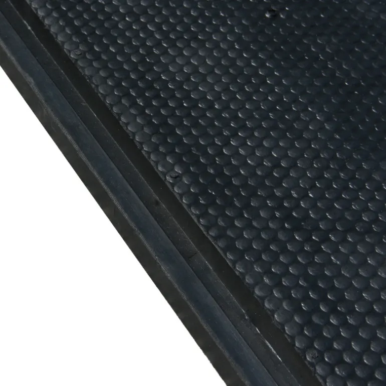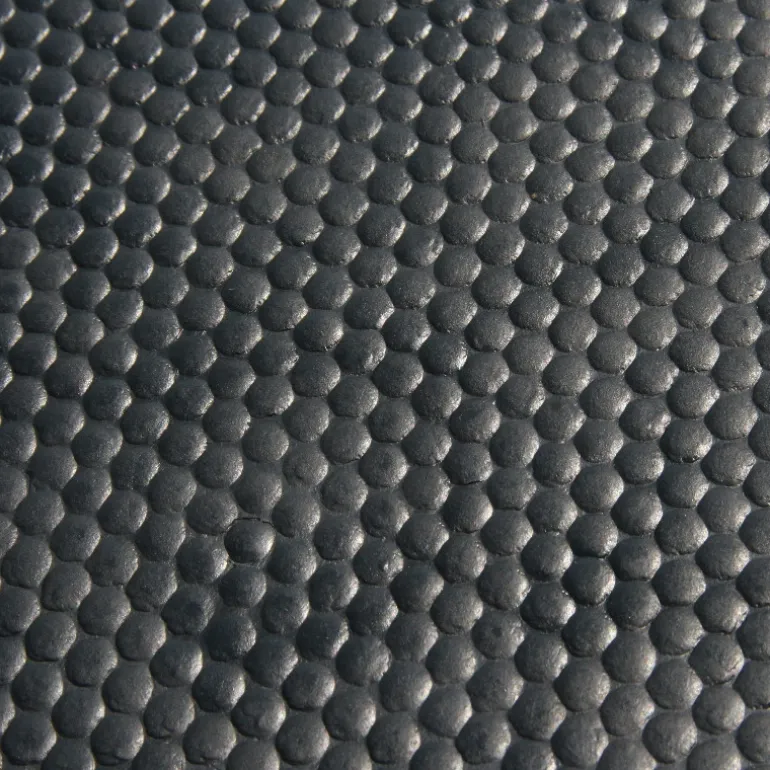 La surface martelée de ce tapis de box le rend hautement antidérapant et évite donc à votre cheval toute glissade.