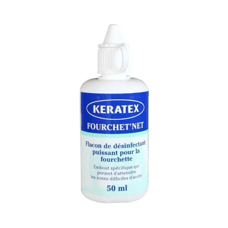 Fourchet Net de la marque Keratex est un désinfectant puissant pour solutionner les problèmes de pourriture de fourchette de votre cheval.