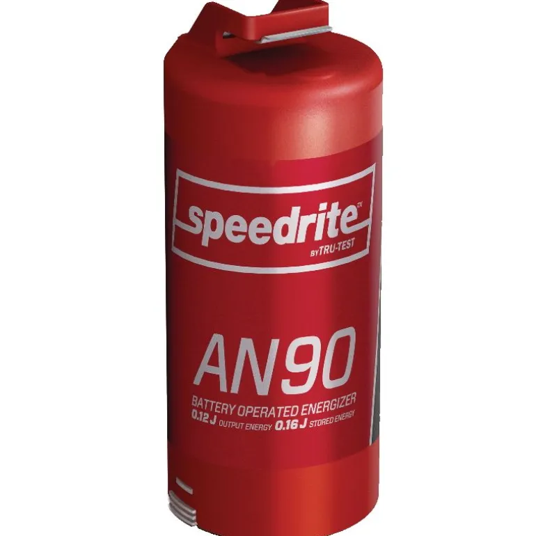L’électrificateur AN90 Speedrite 12V avec pied délivre 120 mJ pour 2 km de clôture maximum, et stocke 160 mJ d’énergie.