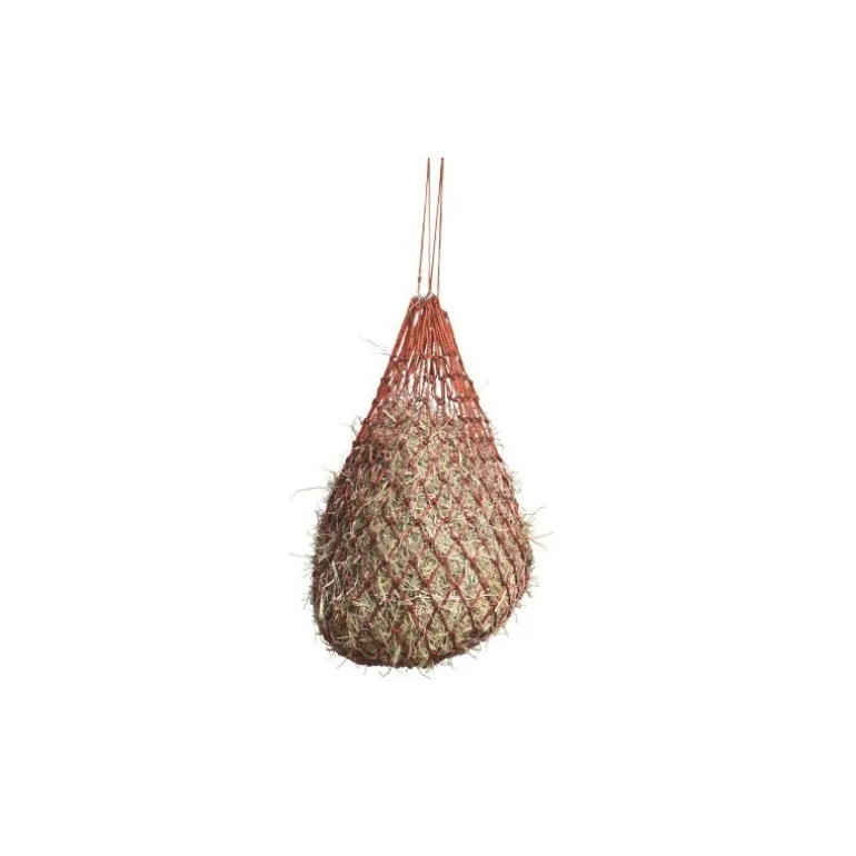 Ce filet à foin à mailles fines est composé de nylon et comprend une sangle de suspension. Il permet de ralentir le temps du repas.