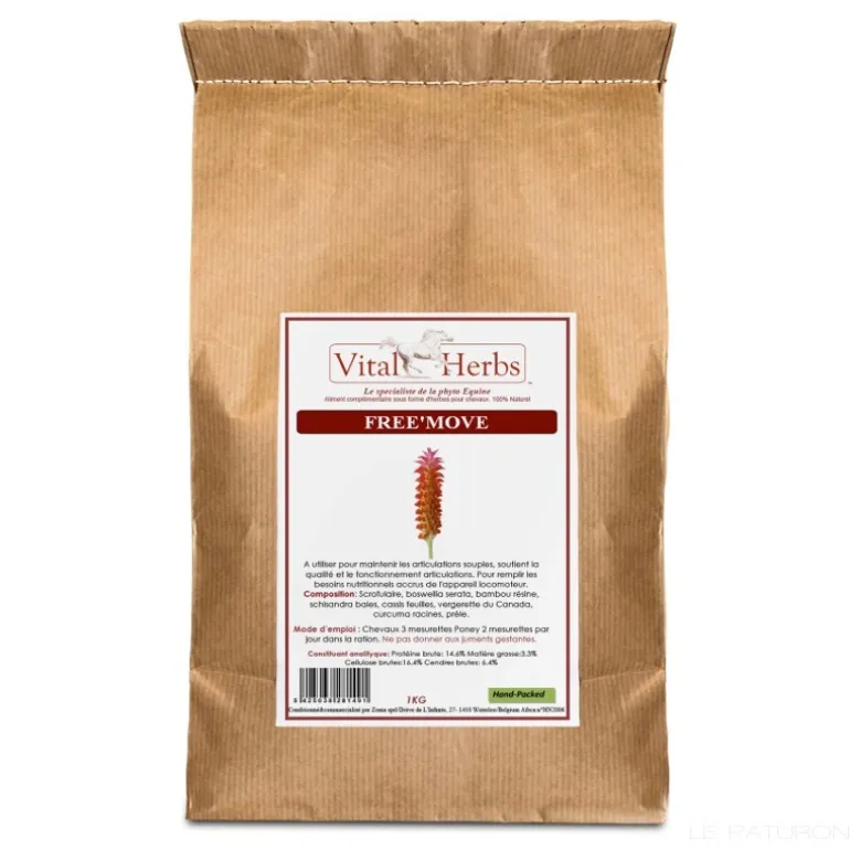 Free Move de la marque Vital Herbs est un mélange non dopant sans harpagophytum pour les articulations et la mobilité du cheval.