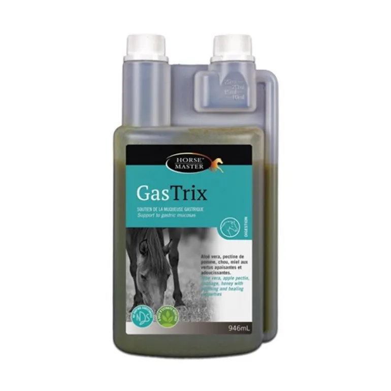 La formule du Gastrix Horse Master est étudiée pour calmer les maux d’estomac en formant un pansement. Le vinaigre de cidre est un régulateur d’acidité gastrique qui va exercer une action bénéfique sur les attaques de la muqueuse. Le chou régénère en protégeant les tissus endommagés et le miel exerce une action apaisante et adoucissante.