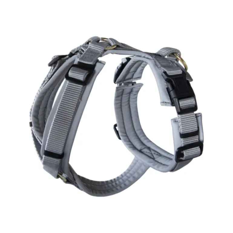 Le harnais est fabriqué en nylon résistant, avec des bandes réfléchissantes. Pour un ajustement confortable, il est renforcé par un rembourrage réfléchissant doux. La combinaison de ces deux matériaux le rend résistant à la saleté et facile à nettoyer. La doublure du rembourrage est lisse pour éviter qu’elle ne frotte contre la fourrure du chien. Les deux clips sur les côtés du harnais sont solides et robustes pour une sécurité optimale.