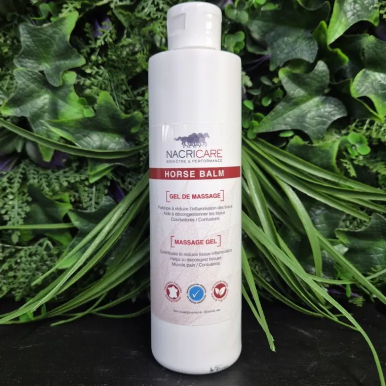 Horse Balm Nacricare est un gel de massage décontractant spécialement conçu pour aider à détendre la masse musculaire, les tendons et les ligaments du cheval ou du poney.