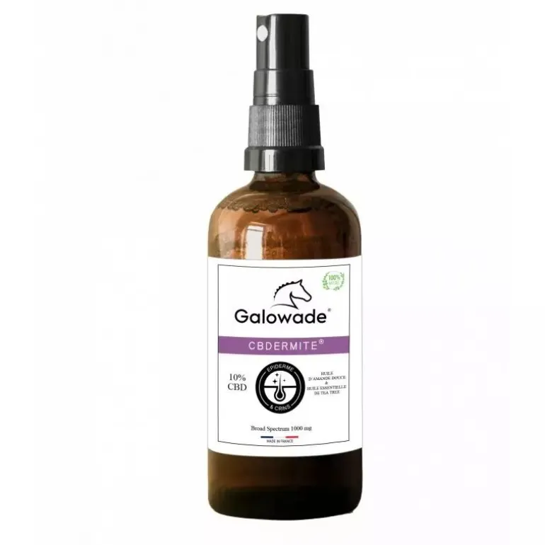 100% naturelle et fabriquée au sein d’un laboratoire française, l’huile apaisante CBDERMITE 10% Galowade est spécialement développée pour apaiser les démangeaisons, les zones sensibles ou irritées de la peau du cheval.