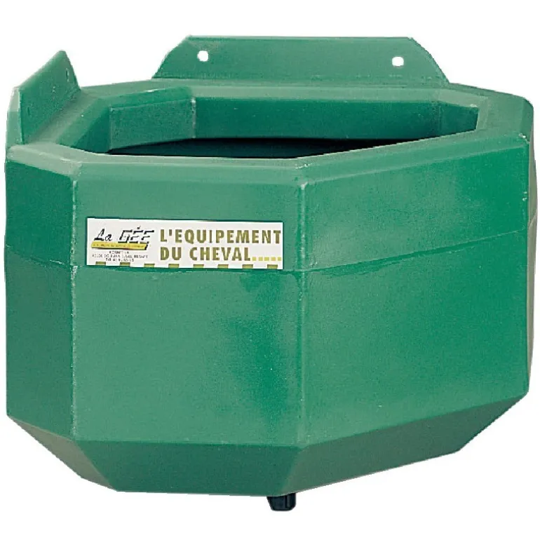 Dotée de rebords anti-gaspillage, cette mangeoire d’angle grande capacité La Gée pour chevaux permet de nourrir une poulinière au box.