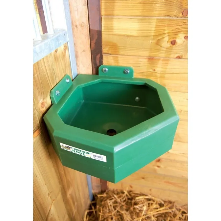 Conçue en résine de polyéthylène, cette mangeoire comporte un rebord anti-gaspillage ainsi qu’un bouchon de vidange à vis facilitant son nettoyage. Son design lui permet d’être fixée dans un angle optimisant ainsi l’espace du box.