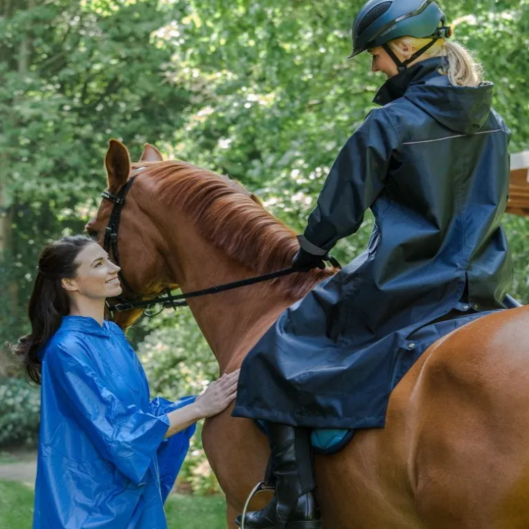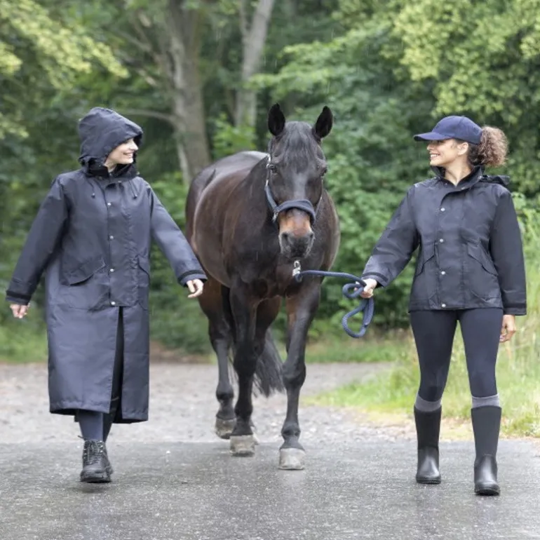Sa glissière surmontée par un rabat pressionné s’arrête assez haut pour vous assurer une complète liberté de mouvement à cheval. Sa capuche logée dans le col s’ajuste à l’aide d’un cordon et ses poignets sont équipés d’une bande velcro.