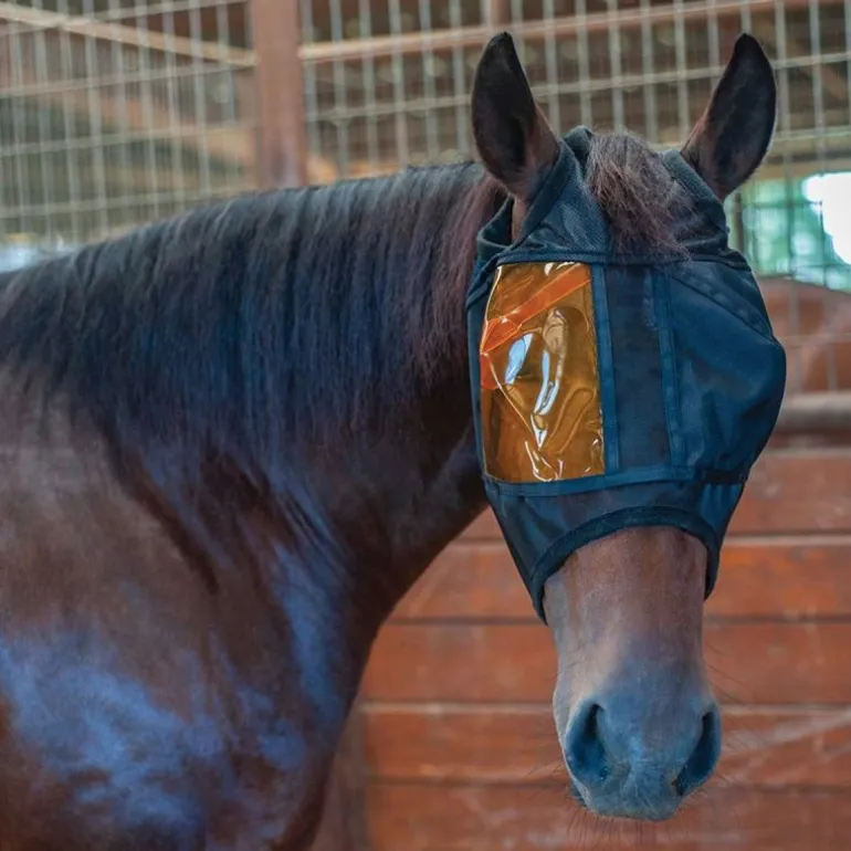 Ce masque est sans danger pour les yeux du cheval et résiste parfaitement aux rayures ainsi qu’aux chocs.