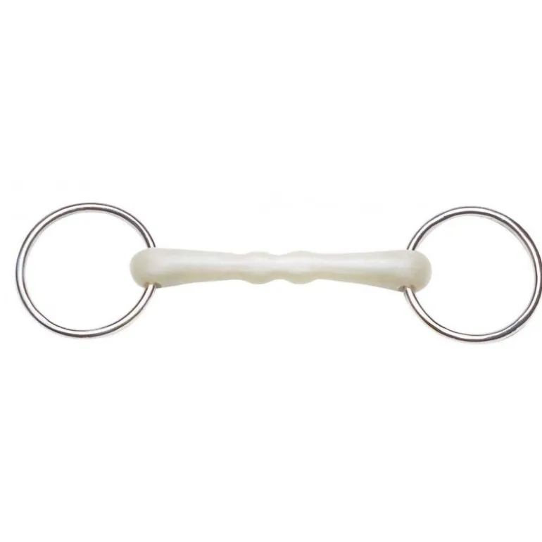 Ce mors droit à noeuds au canon préformé est confectionné en inox et recouvert de résine aromatisée. Le goût de pomme longue durée très apprécié par les chevaux permet de stimuler la mastication.