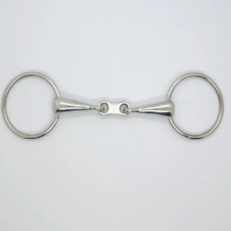 Embouchure de référence, le mors deux anneaux double brisure plat Pro Confort by Harcour convient à la plupart des chevaux n’ayant aucun problème particulier de contact ou de contrôle.