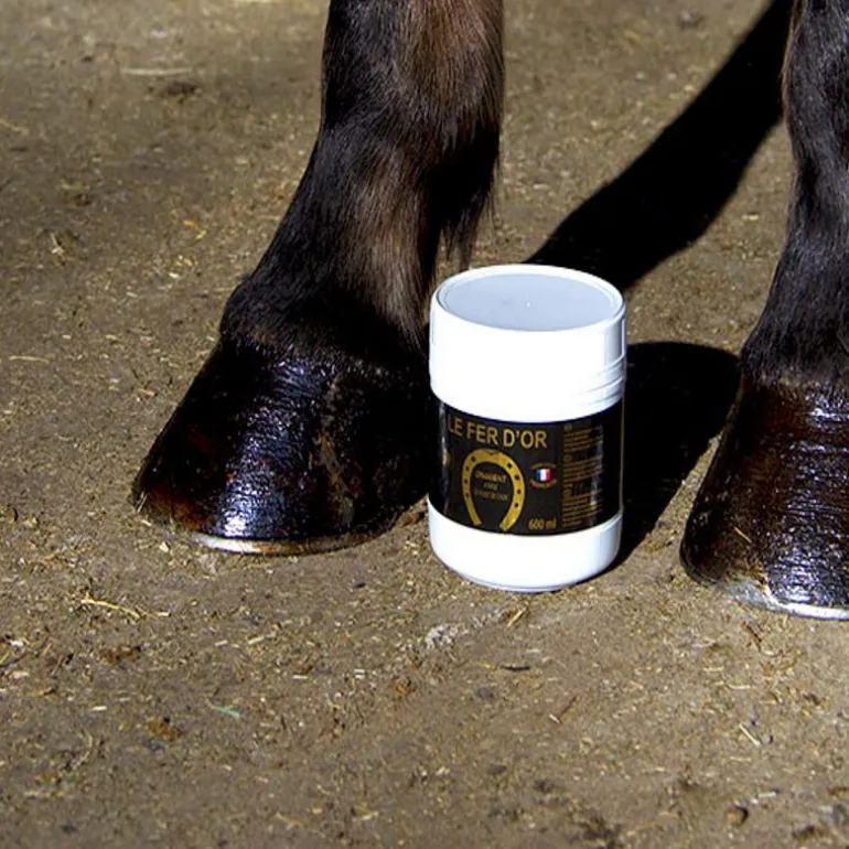 Le Fer d’Or de la Gamme du Maréchal est un onguent pour les sabots particulièrement recommandé pour protéger les pieds des chevaux vivant au pré ou étant régulièrement en contact avec l’humidité.