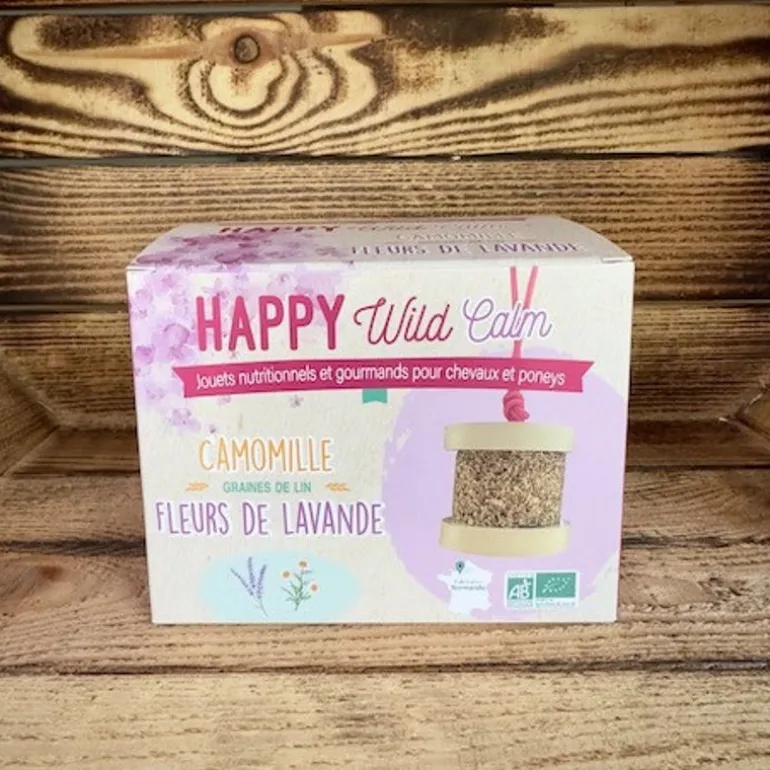 – Happy Wild Calm : flocons d’orge*, flocons d’avoine*, graines de lin doré*, sucre de canne*, Camomille fleurs* (3%), Lavande fleurs* (2,3%).Constituants analytiques et nutritionnels : Protéines brutes 8,9 % ; Humidité 7,4 %; Matière grasse totale 7,2 % ; Cellulose brute 4,3 % ; Cendres brutes 1,8 % (ou teneur en minéraux) ; Sodium < 1 %