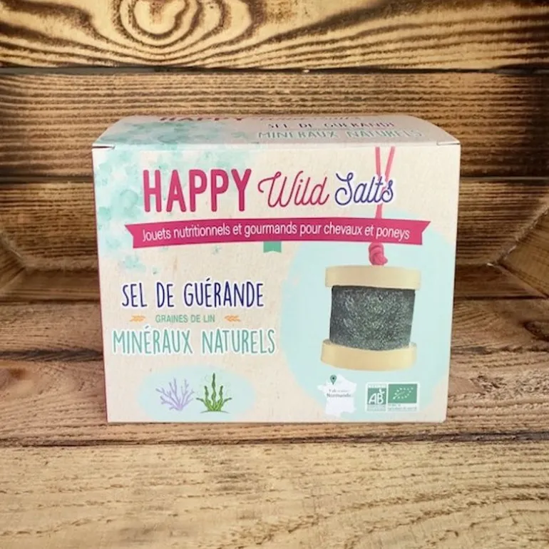 – Happy Wild Salts : pierre au sel de Guérande et aux algues dont de la spiruline Bio et du lithothamne, naturellement riches en minéraux et oligo-éléments.