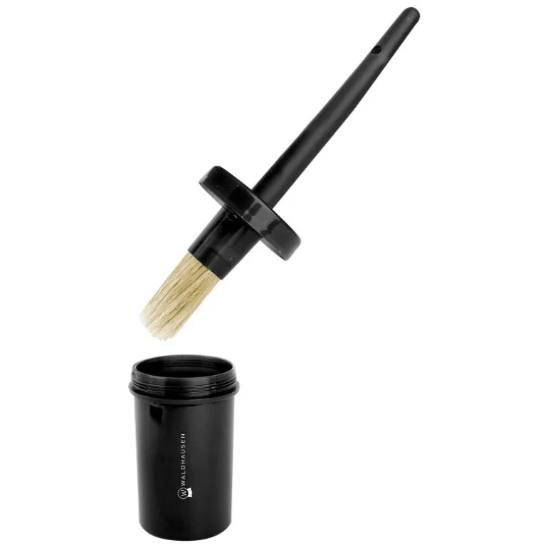Un pinceau en poils de porc doux Waldhausen pour appliquer huile et onguent. Son réservoir pratique permet de récupérer l’excédent et d’éviter de salir le reste de votre matériel dans votre boite de pansage.