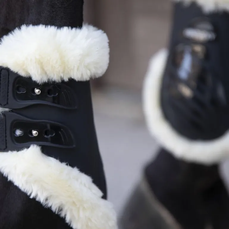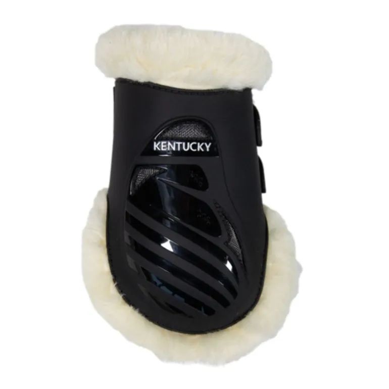 Les protèges-boulets élastique en mouton artificiel Kentucky Horsewear sont fabriquées à partir d’une coque TPU solide avec de multiples trous d’aération et un plus grand triangle d’aération en maille.