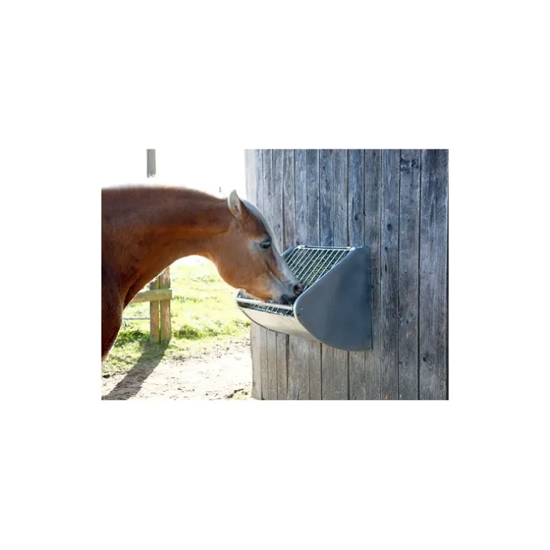 Conçu en métal zingué, ce râtelier à foin mural permet de réduire la vitesse d’ingestion de votre cheval ou poney. Équipé d’une grille positionnée sur le fourrage, ce système oblige l’animal à prendre de petites portions et à manger plus lentement.