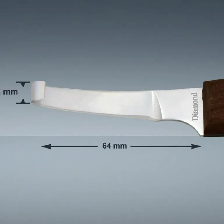 Une rénette en acier inoxydable avec un lame fine à simple tranchant, recourbée sur le bout. Plus légère et agile.