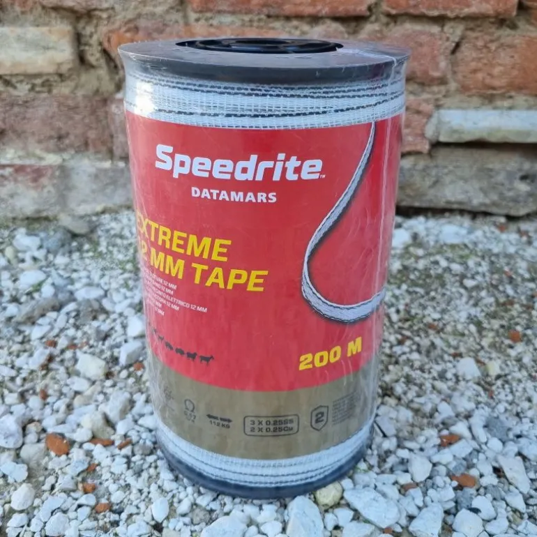 Le ruban électroplastique Extreme 12mm en PEHD noir/blanc Speedrite vous est livré en bobine de 200m.