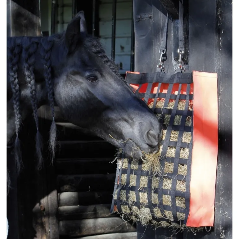 Conçu dans une robuste toile 600 deniers, ce sac à foin se révèle idéal pour partir en concours. Ses petites mailles de 5 x 5 cm incitent le cheval à manger plus lentement. Sa sangle d’attache avec mousqueton permet de le suspendre rapidement et facilement.