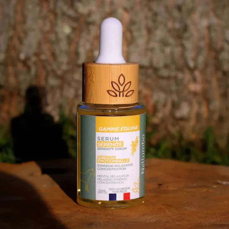 Le Sérum Sérénité Nellumbo est un soin olfactif 100 % naturel formulé pour apaiser le cheval, favoriser la détente émotionnelle et améliorer la concentration.