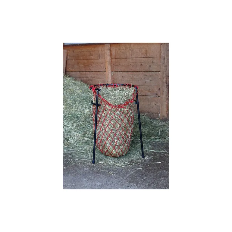 Équipé de trois pieds pour un bon maintien, ce support robuste est spécialement conçu pour faciliter le remplissage des filets à foin. Sa large ouverture permet de retirer aisément votre filet une fois celui-ci rempli.