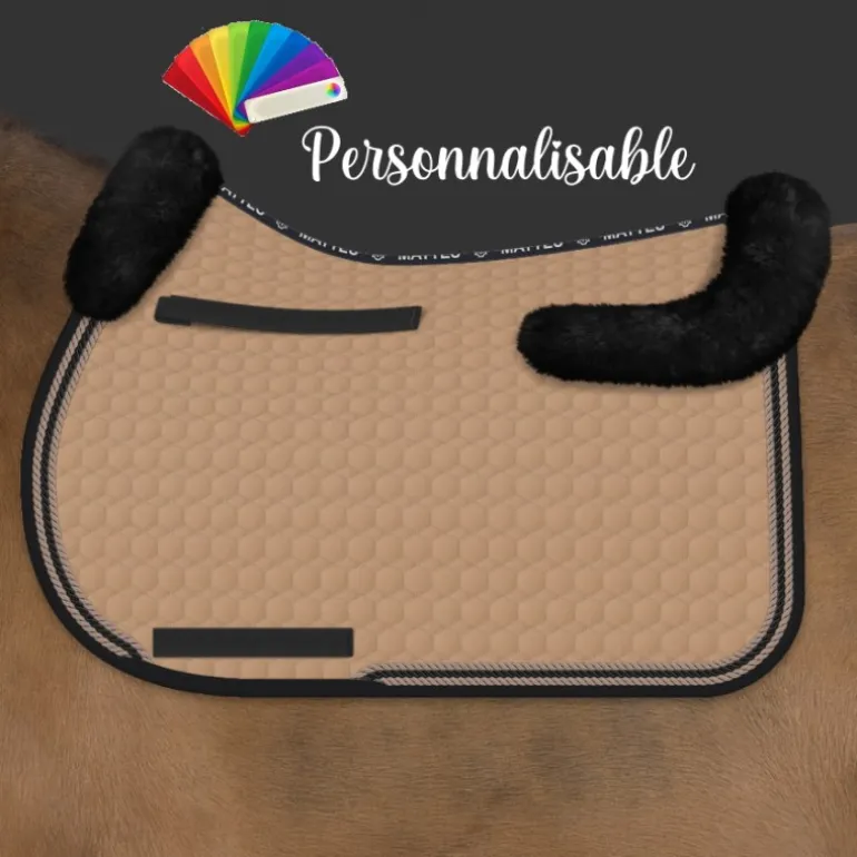 Le tapis de selle avec mouton intégré Mattes permet une répartition idéale de la charge de votre selle en diminuant les pressions et les frottements.
