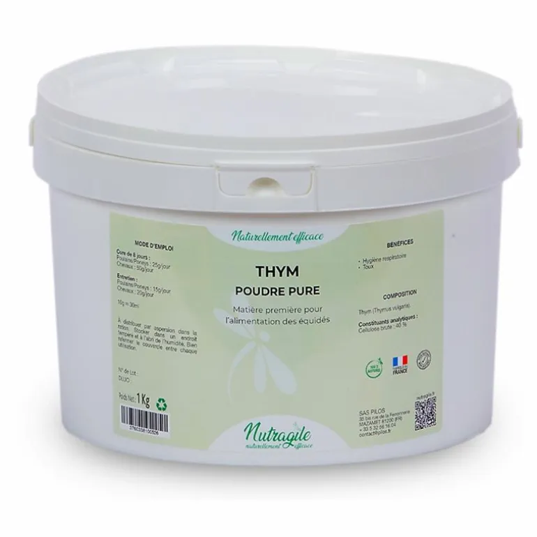 Le Thym (thymus vulgaris) Nutragile outre son utilisation aromatique dans la cuisine soulage également une grande variété d’affections respiratoires chez le cheval.