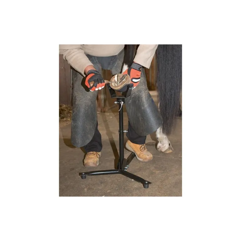 Son support de sabot en caoutchouc et son design à trois pieds limitent les risques d’accident et vous permet de ferrer tous les chevaux.
