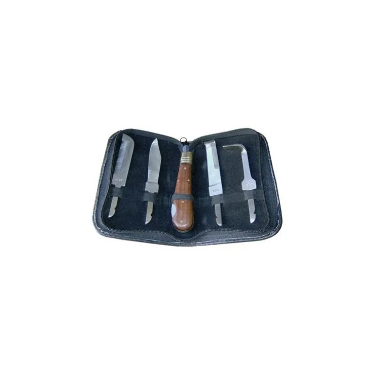 Trousse: 9 x 15 x 3 cm. Manche en bois.