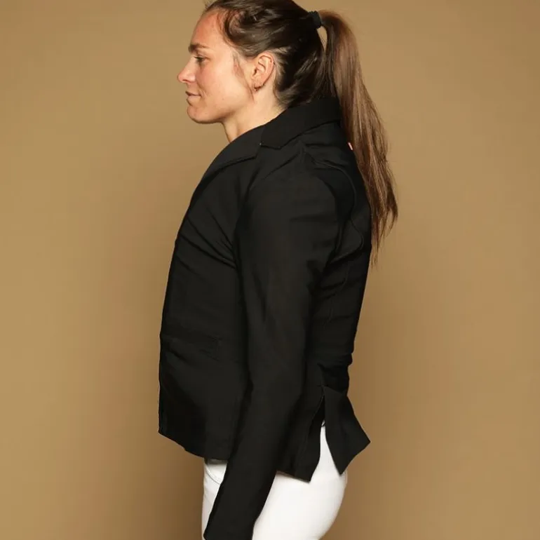 La veste de concours Jinger GEM signe le retour d’un modèle iconique de la marque, désormais compatible avec le port d’un gilet airbag d’équitation.