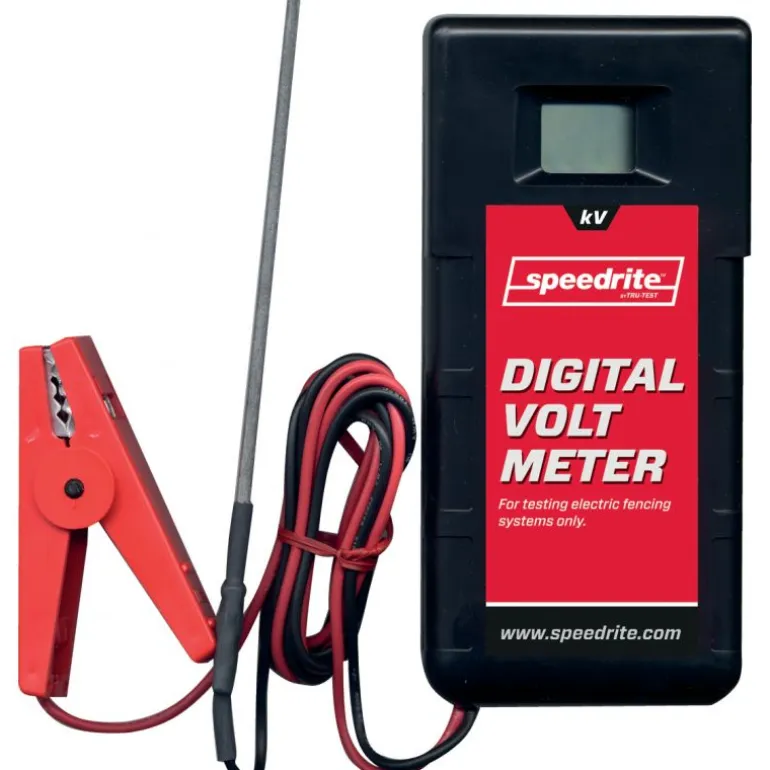 Le testeur voltmètre digital 10 KV Speedrite avec sonde terre teste votre clôture, l’électrificateur ainsi que le système de mise à la terre.